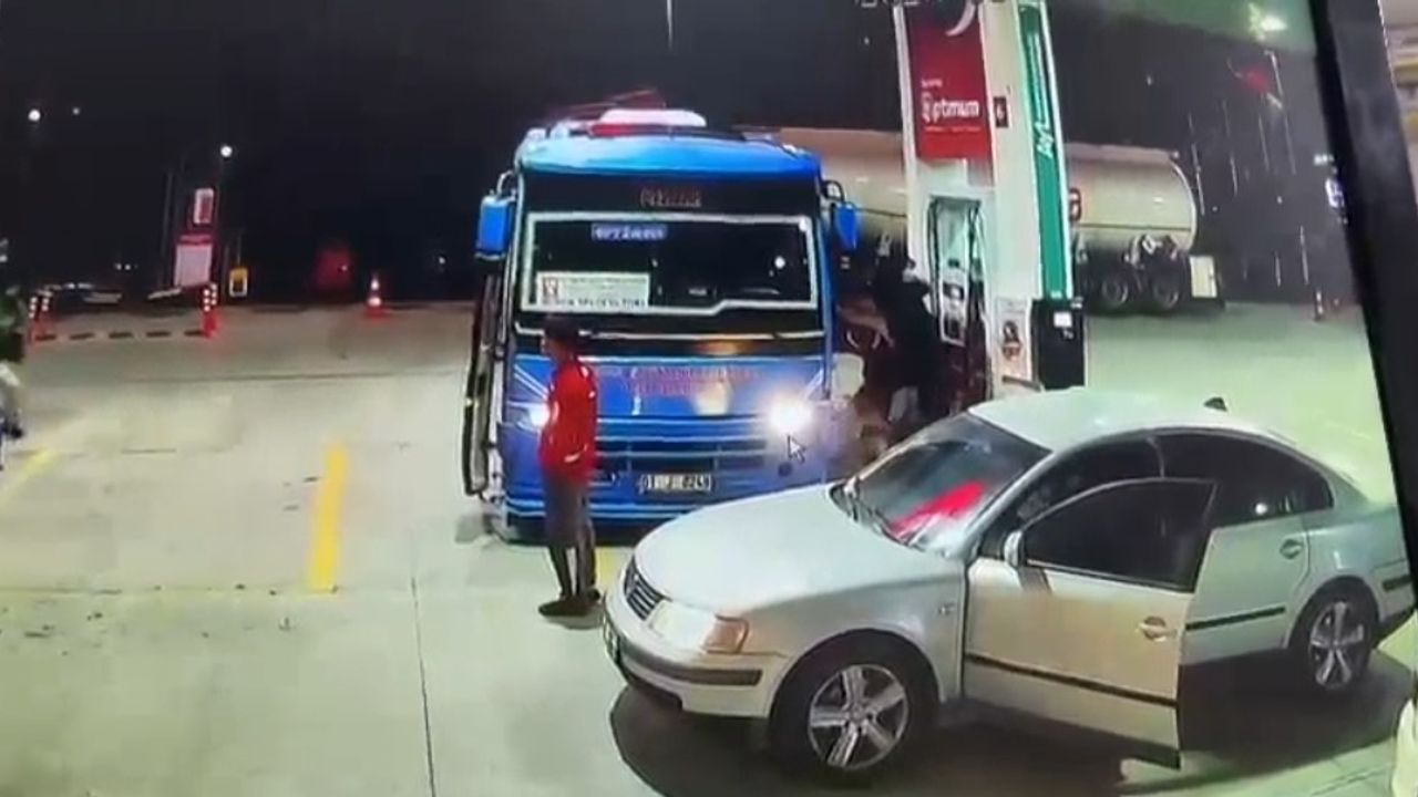 Olay, dün akşam merkez Sarıçam ilçesinde meydana geldi. İddiaya göre, yeni toplu taşıma düzenlemesi kapsamında Buruk güzergahında yeni özel halk otobüsü hatta dahil edildi. Bu duruma tepki gösteren dolmuş şoförleri ile özel halk otobüsü şoförleri arasında zaman zaman gerginlikler yaşandı. Dün akşam dolmuş sürücüsü Gıyasettin S. (26) ve kardeşi Veysel S. (25), akaryakıt istasyonunda yakıt alan özel halk otobüsü sürücüsü Oğuz Özdemir’e (26) taş ve sopalarla saldırdı. Saldırıda tabanca da kullanan şüpheliler, şoförü sopa ve yumruklarla darbetti. Gruptakilerden bir kişi de otomobille şoförü ezmeye çalıştı. Şoför şüphelilerin elinden kurtulup otobüse binerek bölgeden uzaklaşmak istedi. Bu sırada şüphelilerden biri, otobüsün açık olan kapısına tabancayla ateş etti. O anlar, iş yerinin güvenlik kamerasına yansıdı.