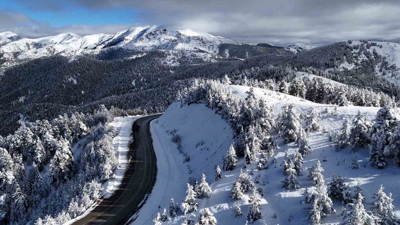 Kar yağışının ardından kristalize olan ağaç dalları ve bembeyaz örtüyle kaplanan dik yamaçlar, havadan çekilen görüntülerle bölgenin doğal güzelliğini bir kez daha kanıtladı.
