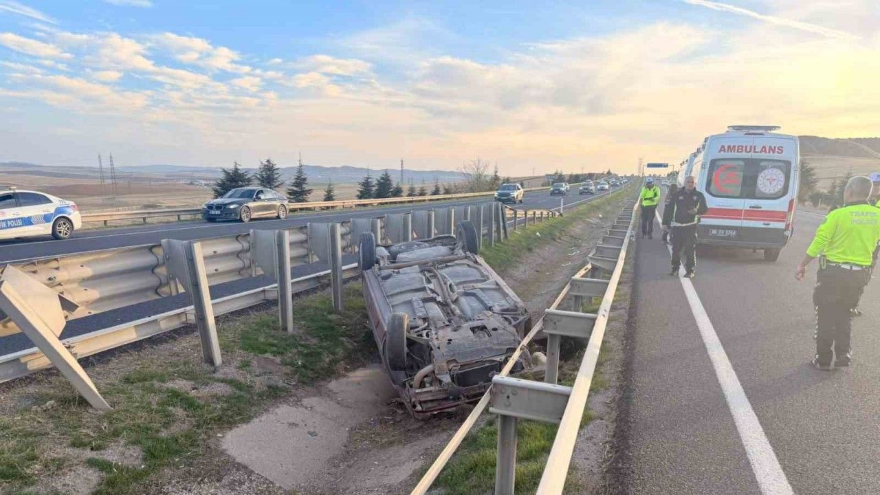 Ankara’nın Polatlı ilçesinde sürücüsünün direksiyon hakimiyetini kaybettiği otomobil refüjde ters döndü. Kazada, 1’i çocuk 3 kişi yaralandı.