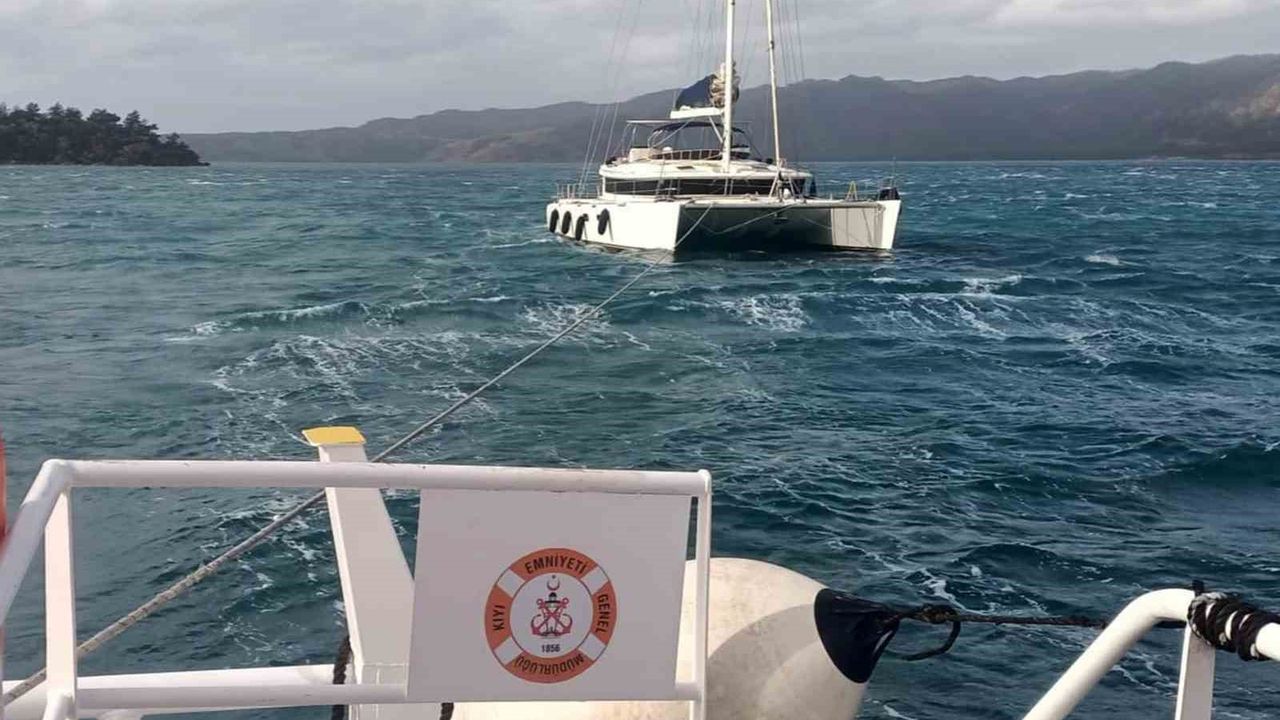 Muğla'nın Marmaris ilçesi açıklarında makine arızası yapan 24 metre uzunluğundaki yelkenli katamaran tekne sürüklenmeye başlayınca Kıyı Emniyet Genel Müdürlüğü ekipleri tarafından kurtarıldı.