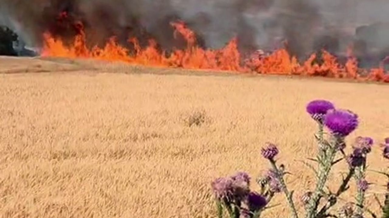 Balıkesir’in Susurluk ile Bandırma ilçeleri arasındaki kara yolunda yol kenarında bulunan bir buğday tarlasında henüz bilinmeyen bir nedenle yangın çıktı.
