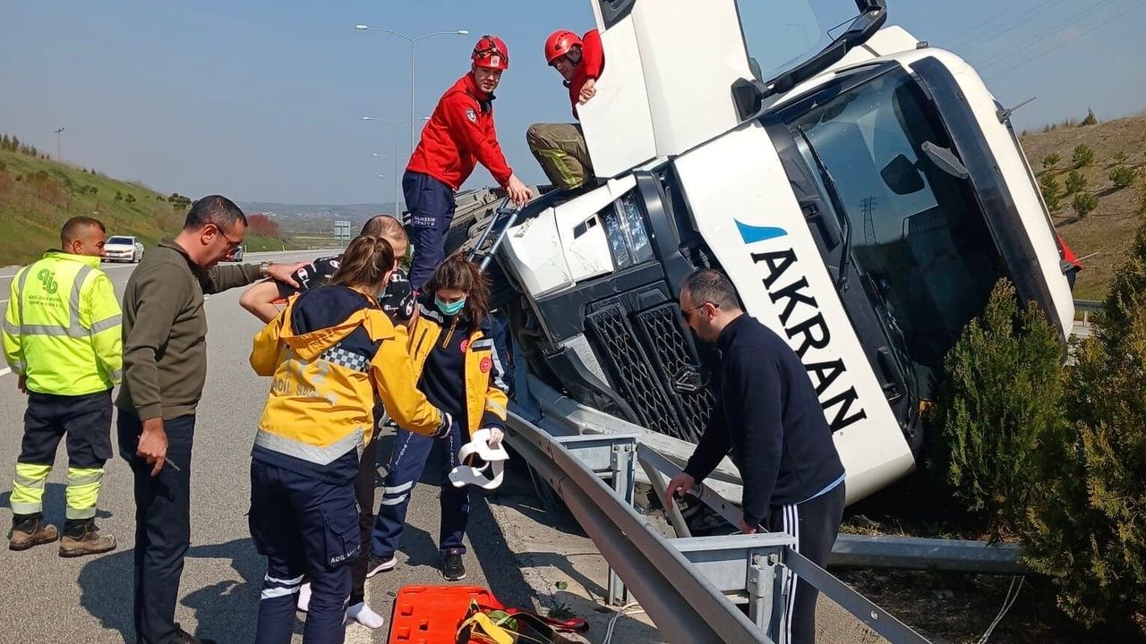 Edinilen bilgilere göre, sürücü V.A.'nın direksiyon hakimiyetini kaybetmesi sonucu İstanbul-İzmir Otoyolu İzmir istikameti Susurluk ilçesi Yahyaköy mevkinde 16 BFZ 459 plakalı çekici ve 16 ALG 191 plakalı dorsenin karıştığı tek taraflı trafik kazası meydana geldi. Kazada sürücü V.A. araç içerisinde sıkıştı.
