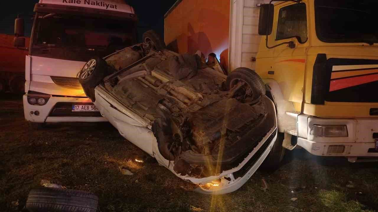 Edinilen bilgiye göre, saat 03.45 sıralarında Biga istikametinden gelen otomobilin sürücüsü R.T., çevre yolu sanayi kavşağında direksiyon hakimiyetini kaybetmesi sonucu refüje vurarak takla attı. Takla atan araç, yol kenarında bulunan park halindeki 2 kamyona vurarak durdu.
