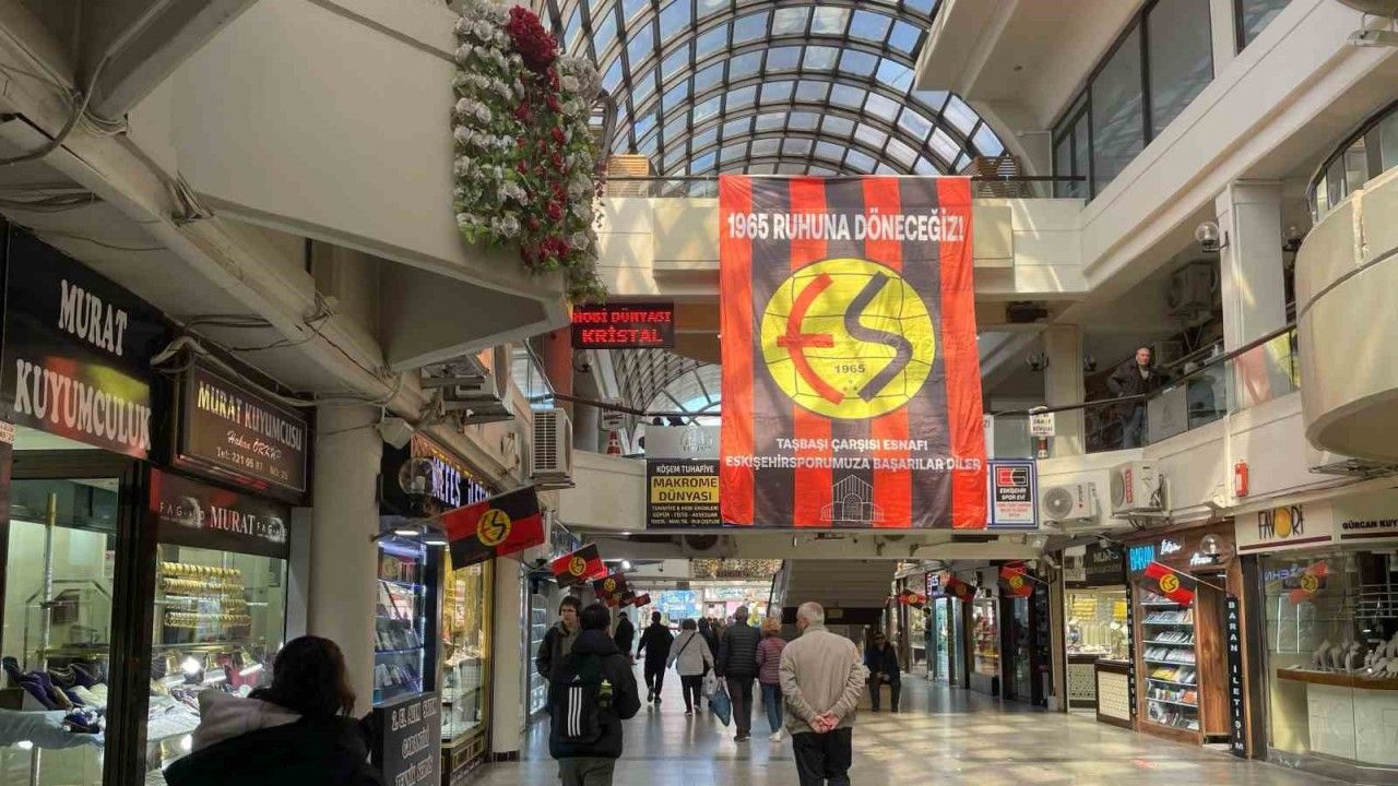 Eskişehir Taşbaşı Çarşısı Esnafı, çarşıyı Eskişehirspor bayrakları ile donattı.
