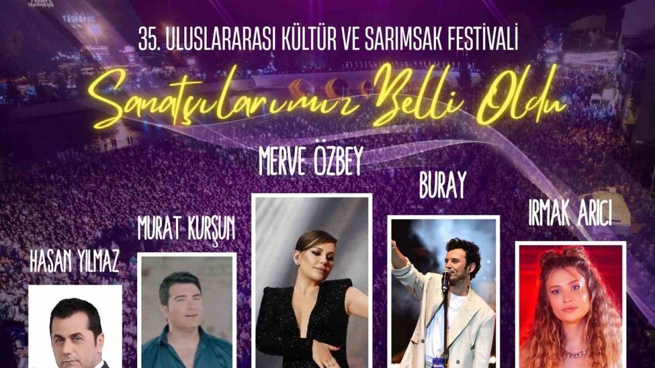 Taşköprü Belediyesi tarafından 14-17 Ağustos tarihleri arasında düzenlenecek 35. Uluslararası Kültür ve Sarımsak Festivali’nde Buray, Irmak Arıcı, Merve Özbey, Murat Kurşun ve Hasan Yılmaz sahne alacak.
