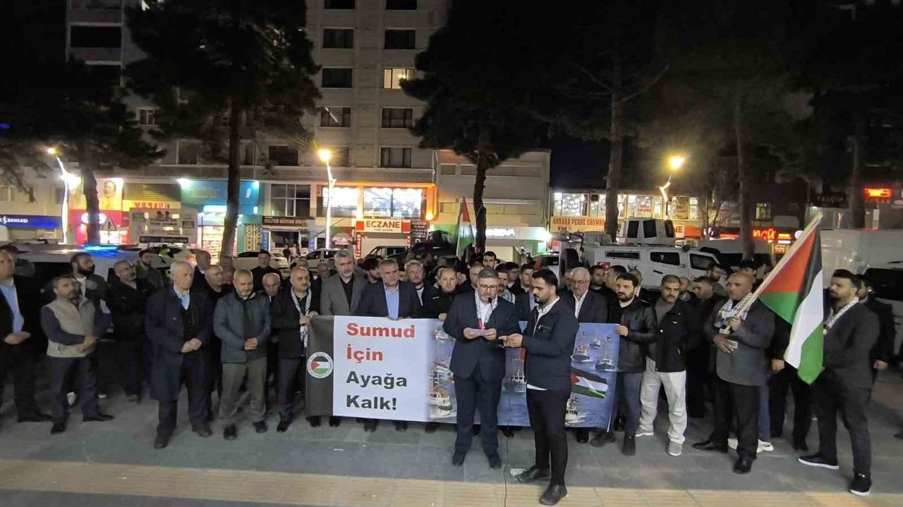 Bitlis'in Tatvan ilçesinde, Gazze'deki insanlık dışı ablukayı kırmak amacıyla yola çıkan Global Sumud Filosu'na İsrail'in uluslararası sularda yaptığı müdahale protesto edildi.