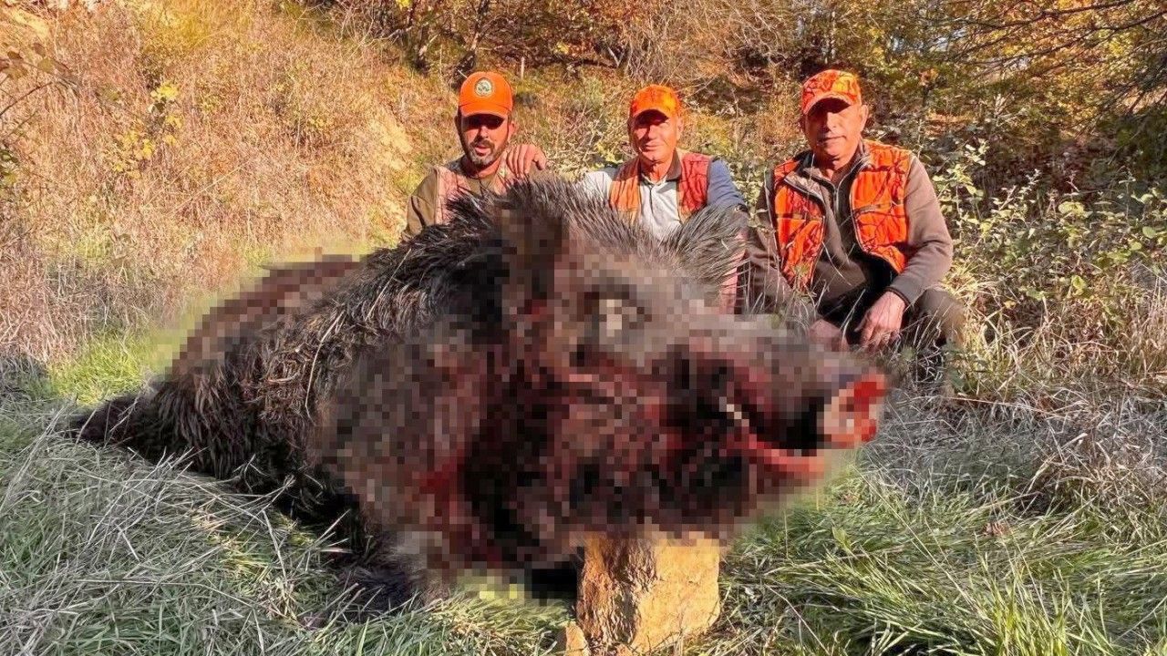 Tekirdağ’ın Hayrabolu ilçesinde sürek avına çıkan avcılar, yaklaşık 300 kilogram ağırlığında dev bir yaban domuzu avladı.