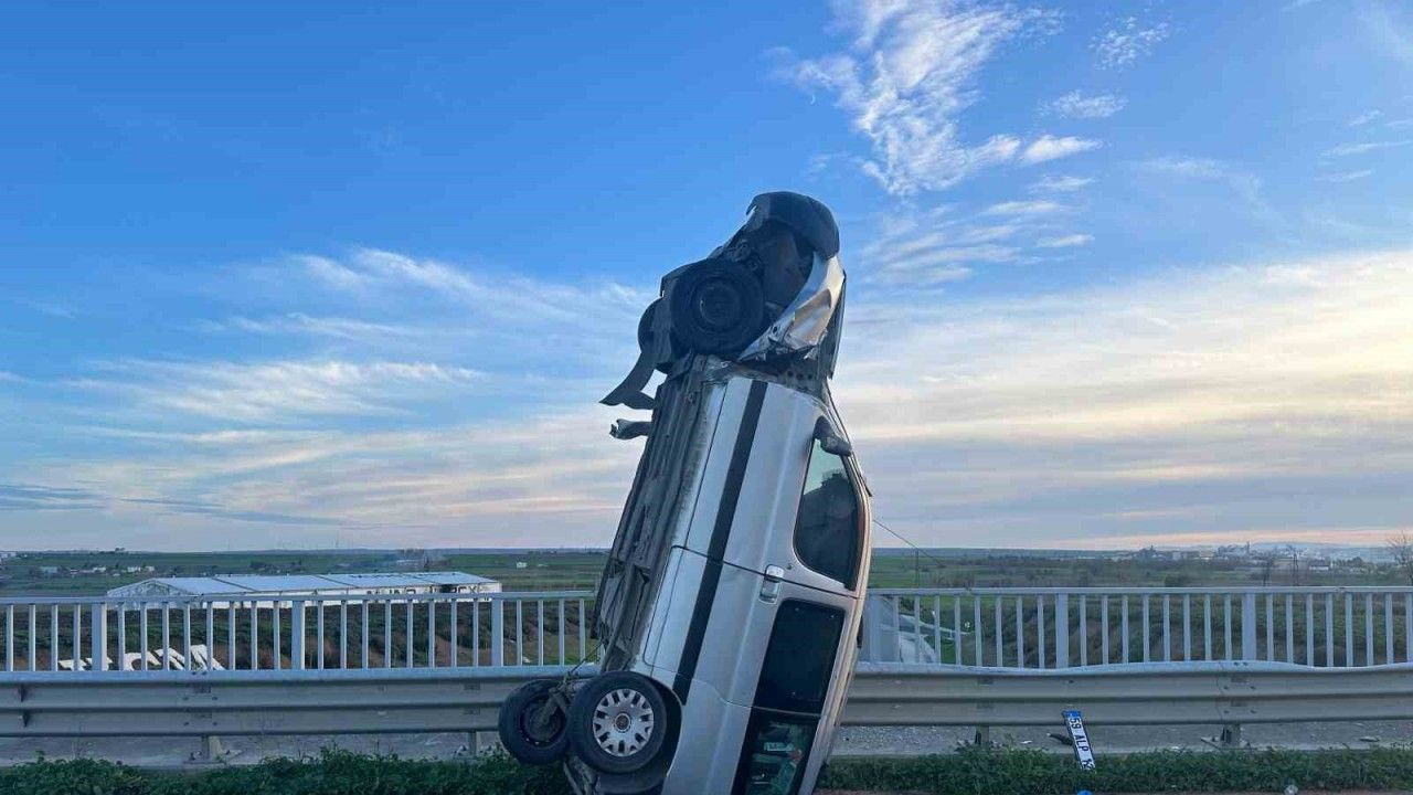 Muratlı–Büyükkarıştıran karayolu üzerinde A.Ç.’nin kullandığı 59 ALP 120 plakalı hafif ticari araç, köprü üzerinde kontrolden çıkarak bariyerlere çarptı ardından dik şekilde durdu. Görenleri hayrete düşüren kazada sürücü A.Ç. ile yolcu H.D. yaralandı. İhbar üzerine olay yerine polis, sağlık ve itfaiye ekipleri sevk edildi. Yaralılar, olay yerinde yapılan ilk müdahalenin ardından ambulansla Tekirdağ Şehir Hastanesi Acil Servisi’ne kaldırıldı.