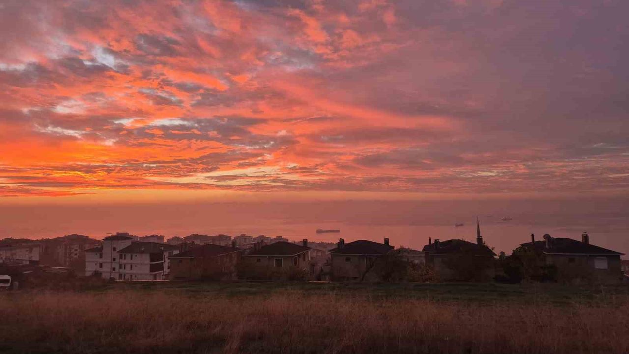 Tekirdağ Süleymanpaşa'da gün doğumuyla birlikte gökyüzünde oluşan turuncu tonlar vatandaşlara büyüleyici bir sabah yaşattı.