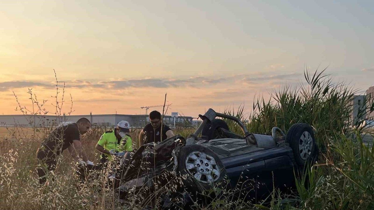 Tekirdağ’ın Ergene ilçesinde otomobilin menfeze çarpıp takla attığı kazada 2 genç hayatını kaybetti.