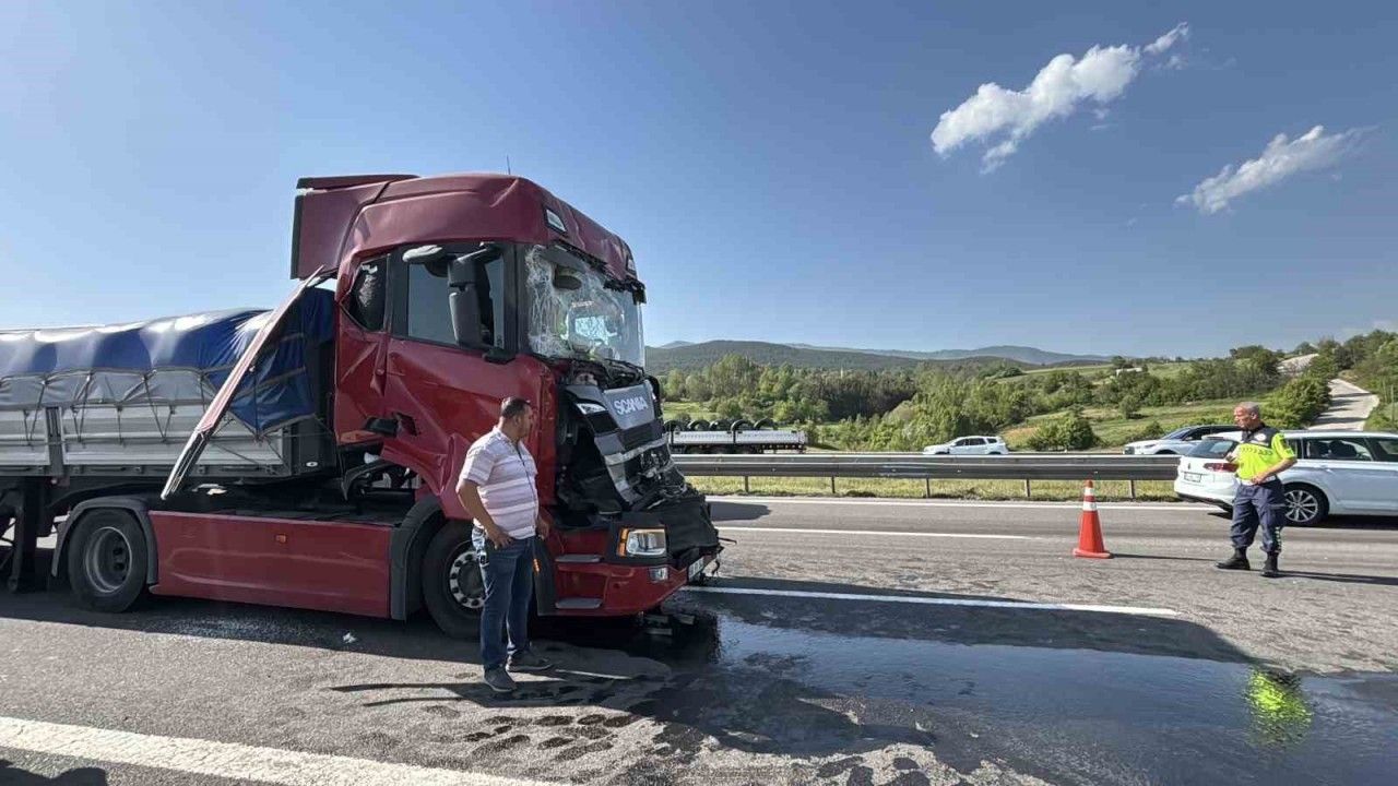TEM Otoyolu’nun Bolu geçişinde meydana 4 tırın karıştığı zincirleme trafik kazasında 2 kişi yaralandı. Tırın dorsesinden düşen konteyner, yolu orta şeridini trafiğe kapattı, kilometrelerce araç kuyruğu oluştu.