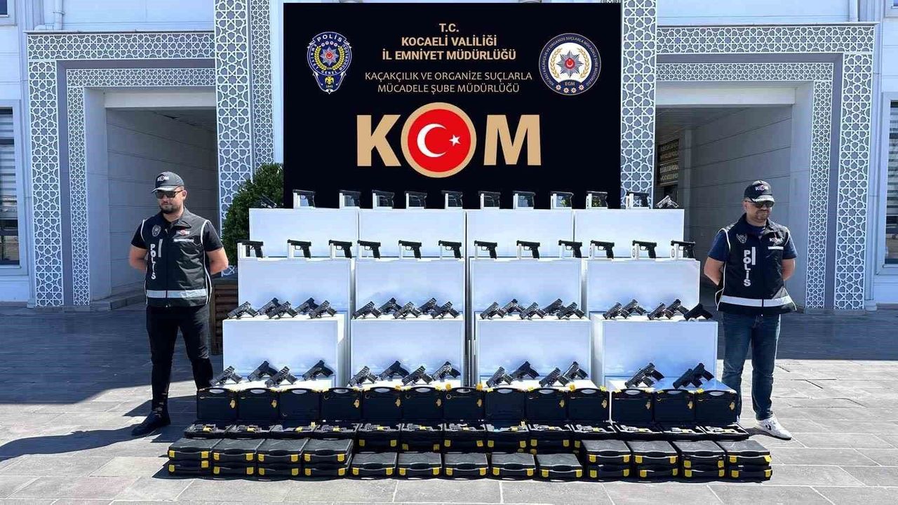 Kocaeli Emniyet Müdürlüğü Kaçakçılık ve Organize Suçlarla Mücadele Şube Müdürlüğü ekiplerince 'silah ve mühimmat kaçakçılığının önlenmesi ve takibi' kapsamında yürütülen çalışmalar sonucu önemli operasyona imza atıldı. Kartepe ilçesi TEM Otoyolu'nda yüklü miktarda silah taşıdığı değerlendirilen bir araca yönelik teknik ve fiziki takip gerçekleştirildi. Düzenlenen operasyonda, araçta yapılan aramada gizlenmiş halde 60 tabanca, 60 silah kutusu, 120 şarjör, 120 harbi ve 120 kabza aparatı ele geçirildi. Ayrıca, suçtan elde edildiği değerlendirilen 2 bin Amerikan dolarına el konuldu.