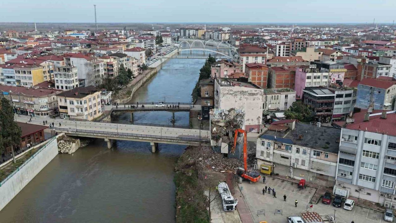Samsun'un Terme ilçesinde her yıl yaşanan ve bölge halkını tedirgin eden taşkınların önüne geçilmesi amacıyla Devlet Su İşleri (DSİ) 7. Bölge Müdürlüğü tarafından yürütülen proje tüm hızıyla ilerliyor. Projenin önündeki en büyük engellerden biri olan binaların yıkım süreci, Samsun Büyükşehir Belediyesi'nin kamulaştırma çalışmalarını tamamlamasıyla resmen başladı.