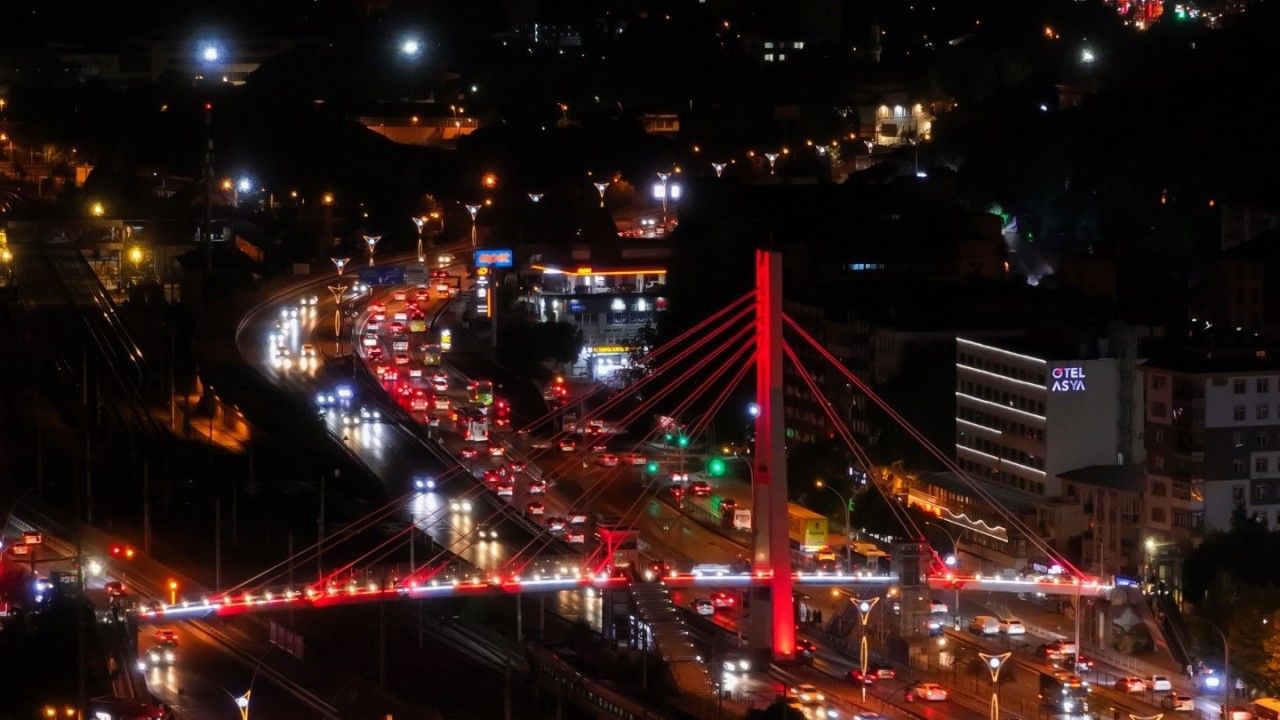 Kentin simgeleşmiş üst geçitleri, Türk bayrağının simgelediği kırmızı ve beyaz renklerle ışıklandırıldı.