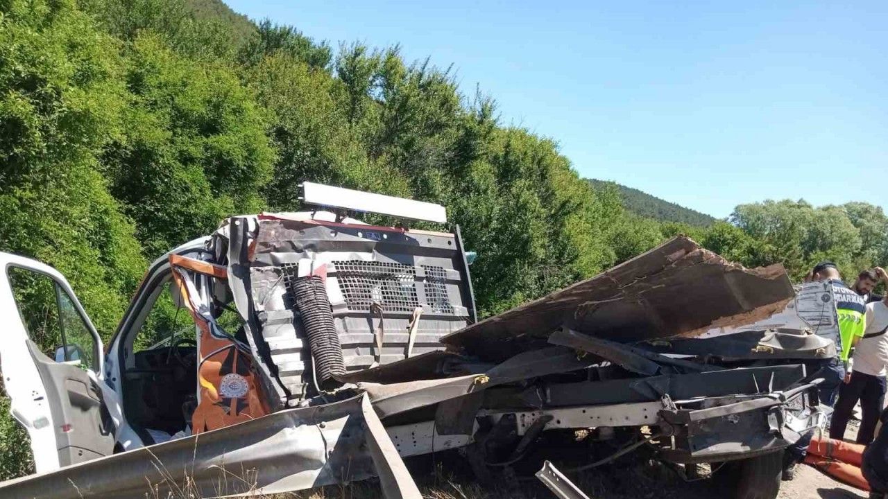 Bolu’da TEM Otoyolu’nda, seyir halindeki tırın yol kenarında duran yol bakım aracına çarpması sonucu meydana gelen kazada 2 kişi yaralandı.
