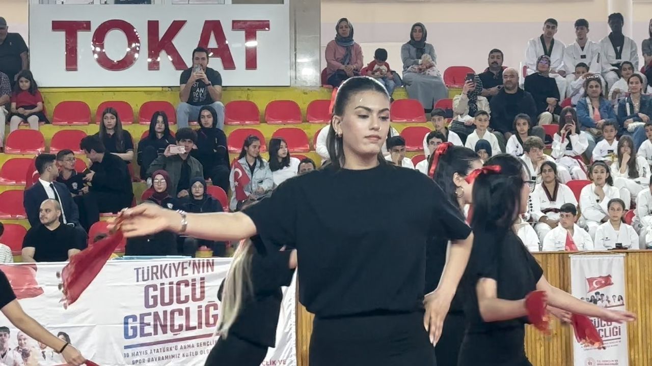 Tokat’ta 19 Mayıs kutlamalarında sahne alan öğrencilerin step ellik aerobik gösterisi, geleneksel halayı modern sporla buluşturarak izleyicilerden büyük beğeni topladı.