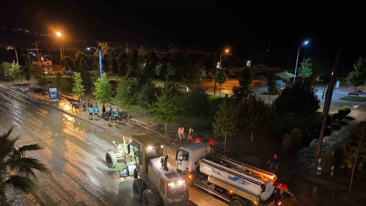 Büyükşehir Belediyesi ekipleri, sel sularının getirdiği çamurları temizleyerek gün ağardığında her iki bölgede hayatı normale döndürmek için büyük gayret sarf ediyor.