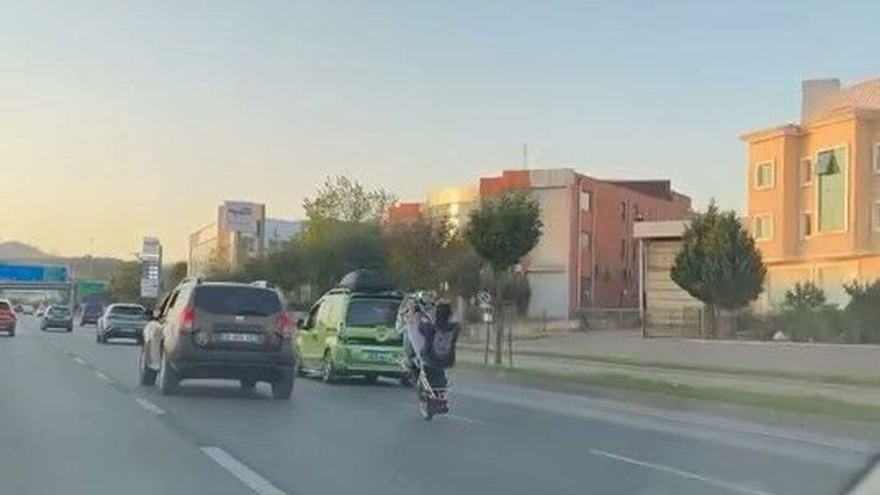 Araçların arasından o şekilde geçen sürücünün, kask ve benzeri olması gereken ekipmanlarının da olmadığı gözlendi.