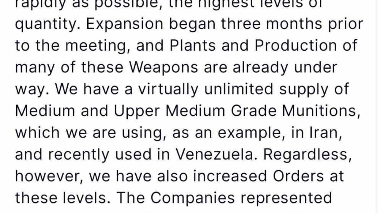 Toplantıya BAE Systems, Boeing, Honeywell Aerospace, L3Harris Missile Solutions, Lockheed Martin, Northrop Grumman ve Raytheon şirketlerinin yöneticilerinin katıldığını aktaran Trump, 2 ay sonra yeni bir toplantı yapma kararı aldıklarını açıkladı. Trump, ülke genelindeki eyaletlerin bu kapsamda kurulacak yeni fabrikalar için teklif verdiğini de sözlerine ekledi.