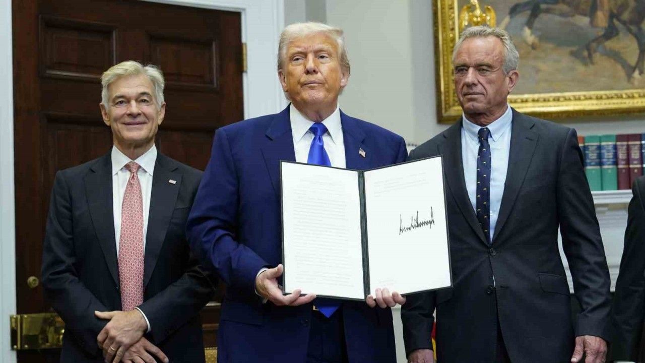 ABD Başkanı Donald Trump, Beyaz Saray’da ABD’deki ilaç fiyatlarını düşürmeye yönelik bir başkanlık kararnamesi imzalayarak, ABD Sağlık Bakanı Robert F. Kennedy Jr. ve Türk kalp damar cerrahı Dr. Mehmet Öz’ün de katıldığı bir basın toplantısı düzenledi.