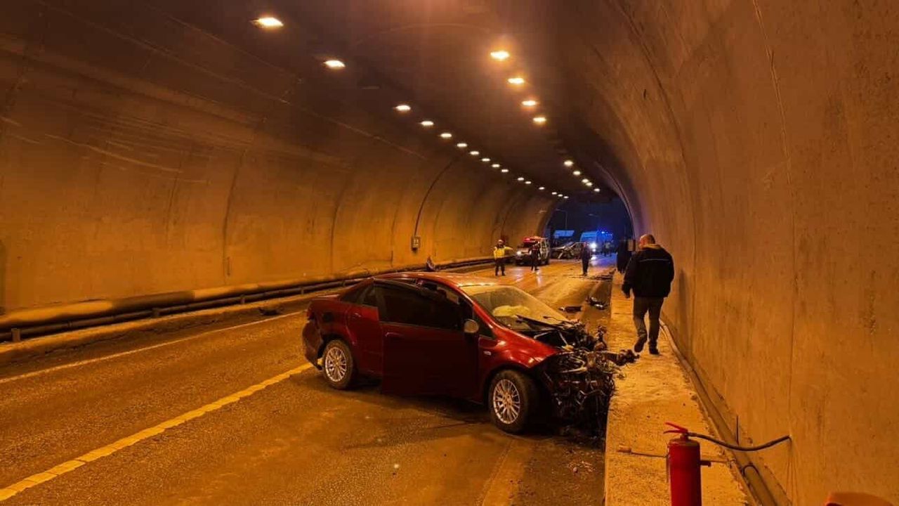 Karabük'te tünel içerisinde iki otomobilin çarpışması sonucu meydana gelen kazada 2'si çocuk 7 kişi yaralandı.