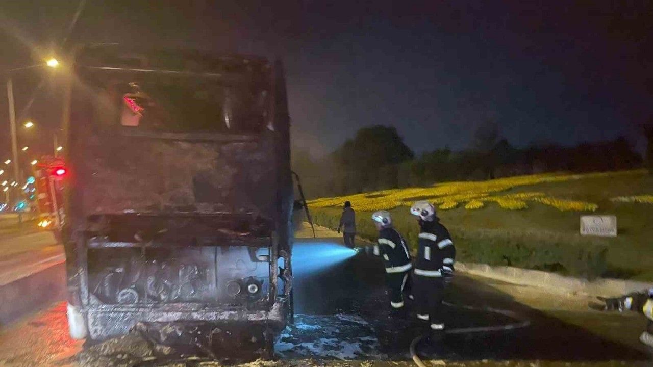 Denizli’de seyir halindeki tur otobüsü alevler içerisinde kaldı. İtfaiyenin müdahalesiyle söndürülen yangında otobüs kullanılamaz hale geldi.