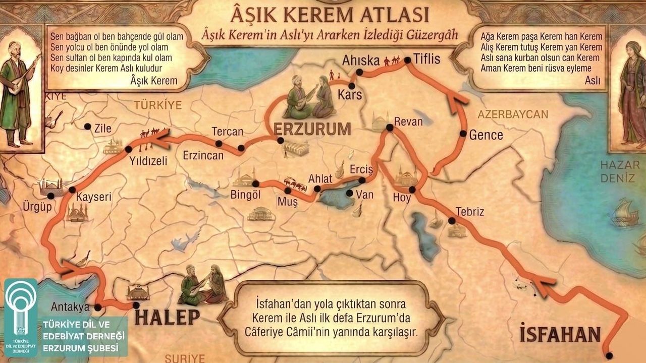 Konuyla ilgili bir açıklama yapan TDED Erzurum Şube Başkanı Murat Ertaş bir Erzurum türküsü olan ve geçtiğimiz aylarda Cumhurbaşkanımız Sayın Recep Tayyip Erdoğan'ın grup toplantısında Türk milletinin gönül coğrafyasını anlatırken 'bir Erzurum türküsü' deyip örnek verdiği 'Nasıl Methedeyim Sevdiğim Seni' türküsünde geçen illerin haritasını, tüm Türk dünyasında bilinen ve hikâyenin tüm varyantlarında en önemli şehir olan Kerem ile Aslı hikâyesinde Aslı'nın ardından Âşık Kerem'in yol aldığı güzergâhı gösteren haritayı ve Erzurumlu Emrah'ın Anadolu'da dolaştığı yerleri gösteren haritayı kıymetli bir ekiple titizlikle şekillendirdiklerini ve Erzurumluların istifadesine sunacaklarını söyledi.
