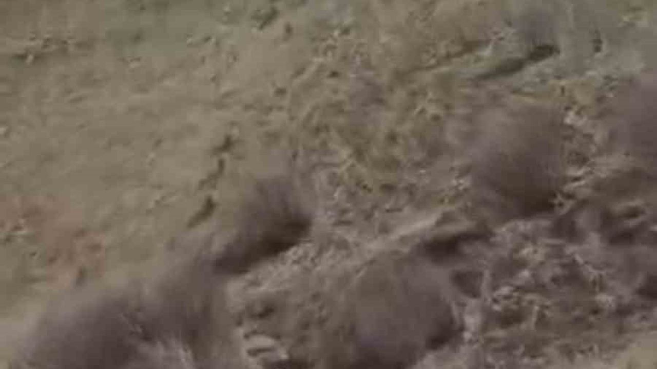 Hakkari Yüksekova ilçesinin İran sınırında yer alan Esendere beldesinde domuz sürüsü görüntülendi.