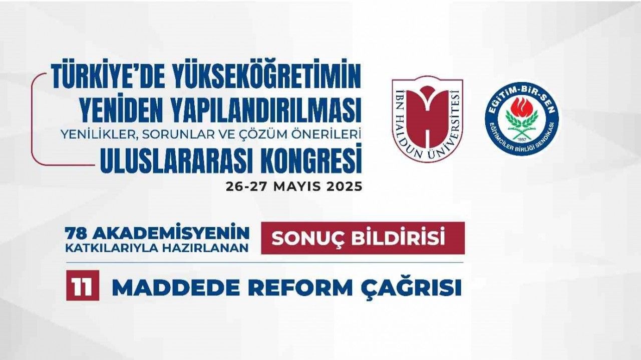 Eğitim-Bir-Sen ve İbn Haldun Üniversitesi iş birliğiyle 26-27 Mayıs tarihlerinde Ankara’da düzenlenen "Türkiye’de Yükseköğretimin Yeniden Yapılandırılması: Yenilikler, Sorunlar ve Çözüm Önerileri Uluslararası Kongresi"nin ardından 78 akademisyenin katkısıyla hazırlanan 11 maddelik reform çağrısının yer aldığı sonuç bildirisi yayımlandı.