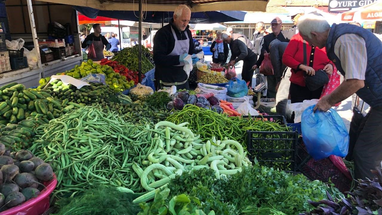 Kornişon, fasulye ve biber gibi sebzelerin alışverişini yapan vatandaşlar yaşanan yoğunluk nedeniyle pazar esnafını da memnun ediyor.