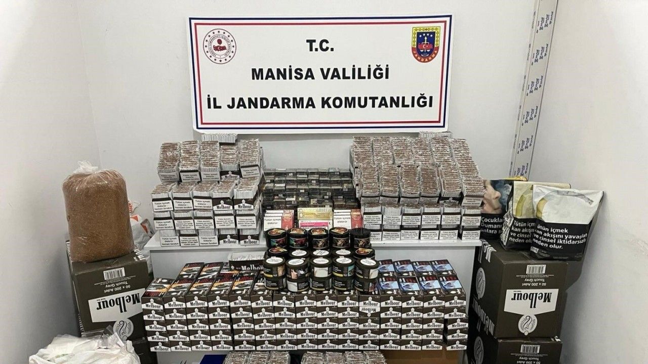 Manisa İl Jandarma Komutanlığı KOM Şube Müdürlüğünce yapılan çalışmalar neticesinde Yunusemre ilçesinde KOM Şube Müdürlüğü ve Yunusemre İlçe Jandarma Komutanlığı ekiplerince E.H. (41/E) ve E.H. (42/K) isimli şahısların evinde ve M.A. (34/E) isimli şahsın işyerinde yapılan aramada; 288 bin 760 adet içi tütün doldurulmuş makaron sigara, 22 bin 400 adet boş makaron, 19 kilogram açık sarmalık kıyılmış tütün, 196 bin 450 kilitli poşet, 55 kilogram nargile tütünü ele geçirildi.