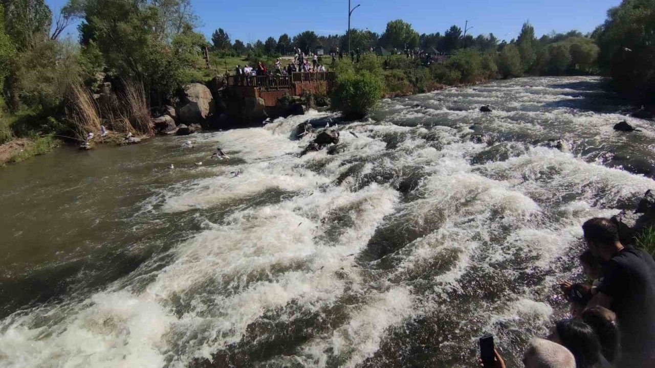 Önüne çıkan engelleri adeta uçarcasına aşan inci kefali, izleyenlere görsel şölen, dere kenarlarına akın eden martılara ise ziyafet sunuyor.