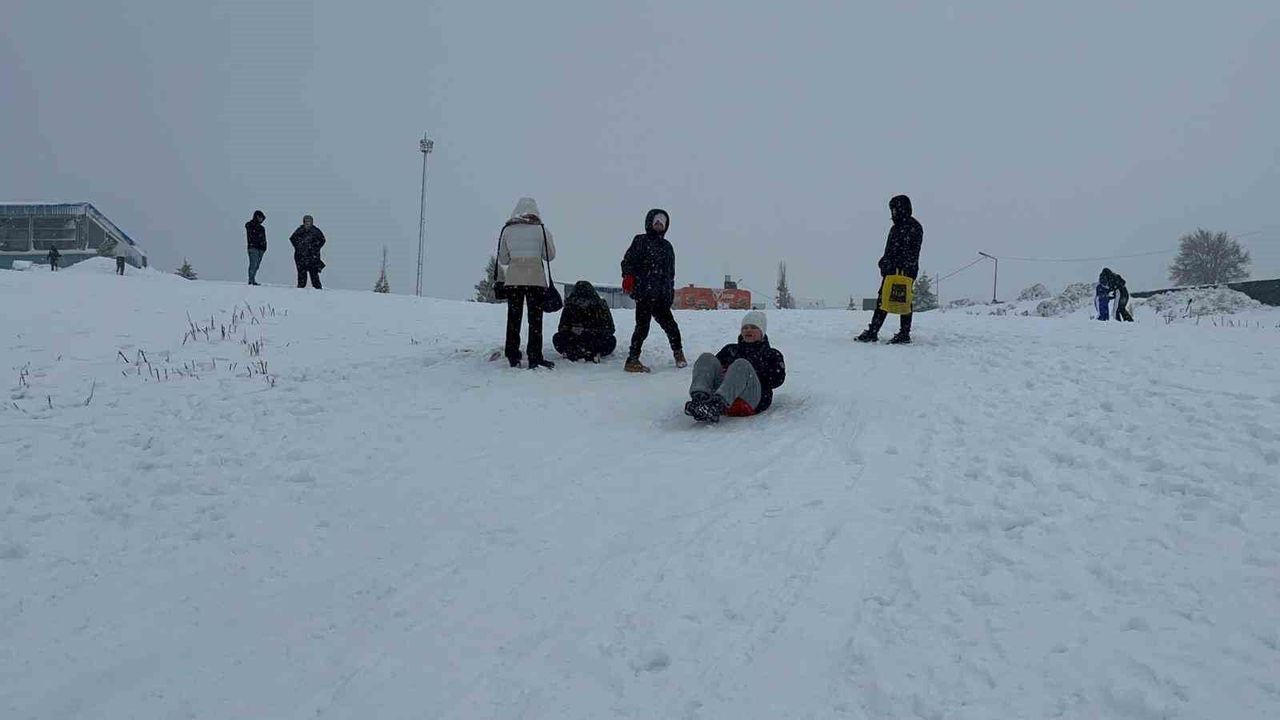 Özellikle aileler ve çocuklar karın keyfini çıkarırken, ortaya renkli görüntüler çıktı. Mart ayının sonuna gelinmesine rağmen etkili olan kar yağışı ise ziyaretçileri şaşırttı.