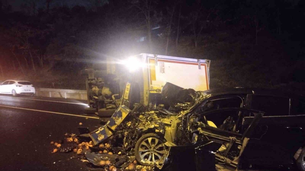 Olay, 03.30 sıralarında TEM Otoyolu Ümraniye mevkii Ankara istikametinde meydana geldi. Edinilen bilgiye göre seyir halindeki 06 EVC 454 plakalı otomobil sürücüsünün direksiyon hakimiyetini kaybetmesiyle aynı yönde seyreden 34 BY 2686 plakalı meyve sebze yüklü kamyonete çarptı.