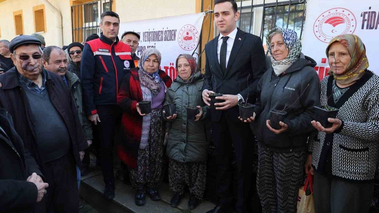 Afyonkarahisar'ın Sultandağı ilçesinde üreticilere ücretsiz dikensiz ay çeşidi kuşburnu fidanı dağıtıldı.