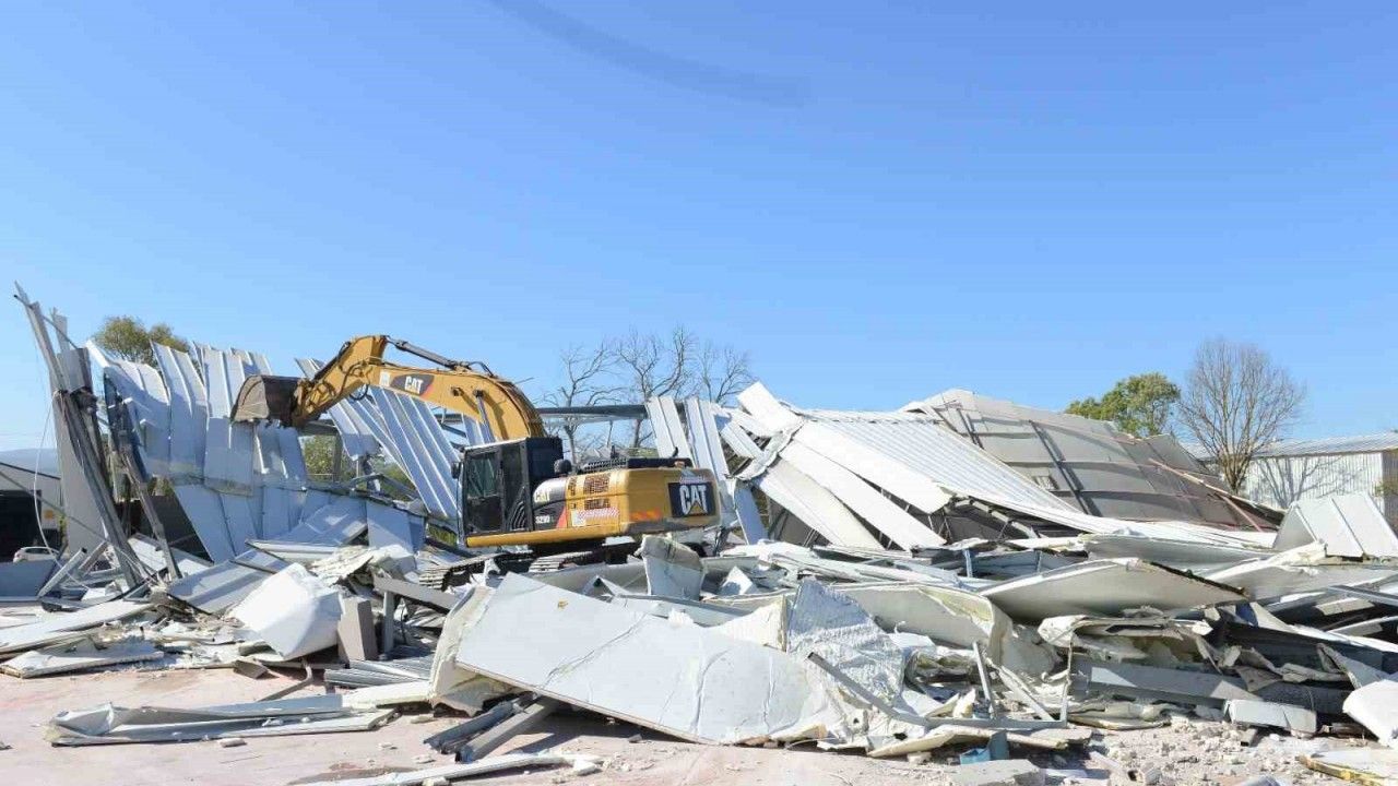 Nilüfer Belediyesi ekipleri, Ürünlü Mahallesi’nde yürüttükleri saha çalışmaları sırasında kaçak olduğu belirlenen iki yapı için harekete geçti. Ekipler ilk olarak iş yeri olarak kullanıldığı anlaşılan bin 500 metrekarelik kaçak fabrikayı yıktı. Gerekli yasal sürecin tamamlanmasının ardından gerçekleştirilen yıkımla devasa yapı yerle bir edildi. Ekipler, daha sonra yine aynı mahallede bulunan 250 metrekarelik bir alana inşa edilmiş kaçak deponun yıkımını gerçekleştirdi.