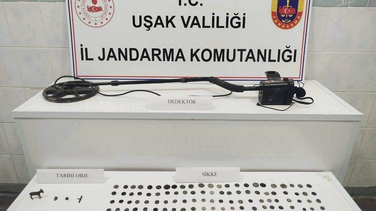 Uşak İl Jandarma Komutanlığı ekipleri tarafından kaçakçılık olaylarının önlenmesine yönelik yürütülen çalışmalar kapsamında Işık Mahallesi'nde bir eve operasyon düzenlendi. Adreste yapılan aramada 161 adet çeşitli dönemlere ait sikke, 7 adet tarihi obje ve 1 adet dedektör ele geçirildi.