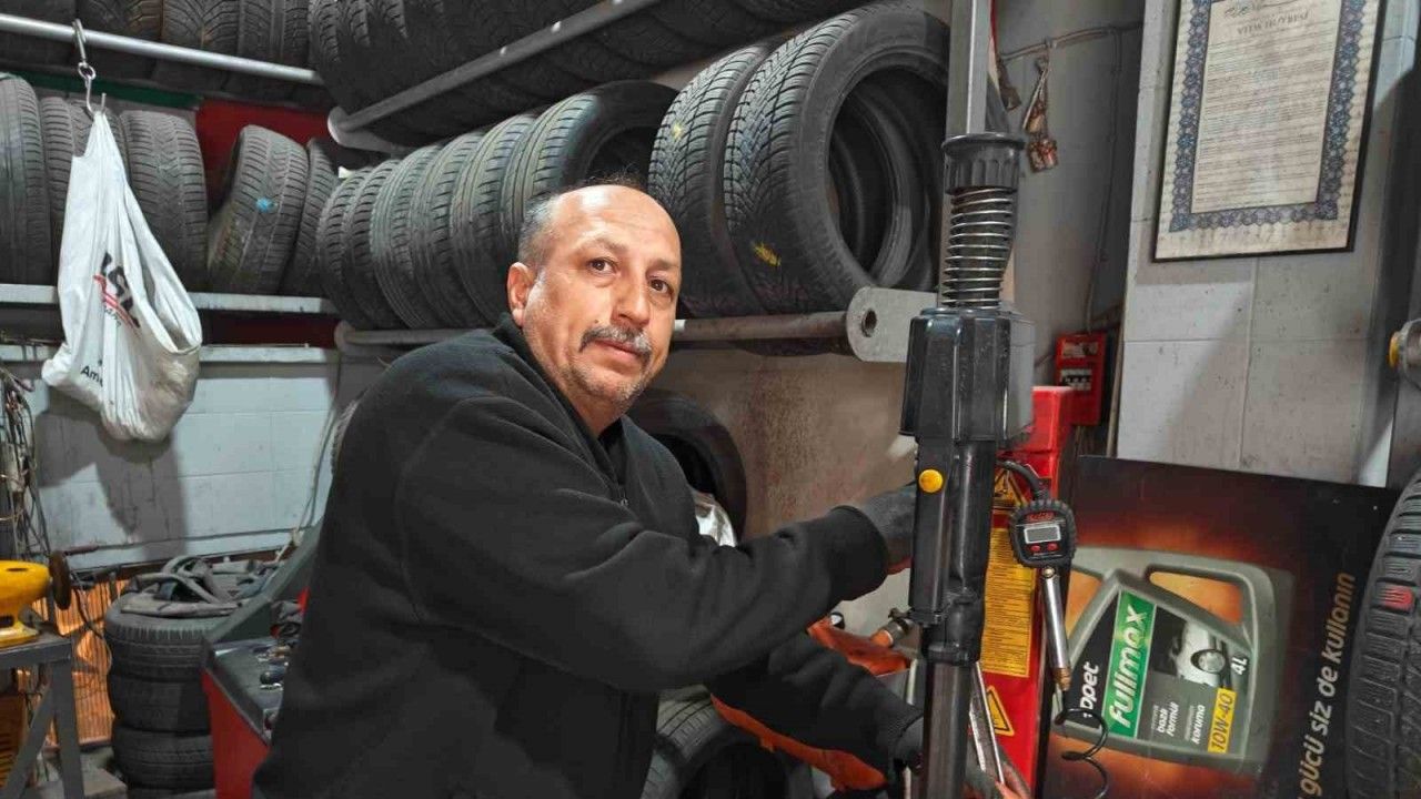 Kayseri’de oto lastikçilik yapan Fatih Durmuş, 15 Kasım’da başlayacak olan Kış Lastiği Uygulaması ile ilgili verdiği bilgilerde lastiklerin dişlerinin sağlıklı olması gerektiğini söyleyerek, "Hem kendimizin hem de karşımızdaki insanların can güvenliği için kış lastiklerimizi taktırmalıyız" dedi.