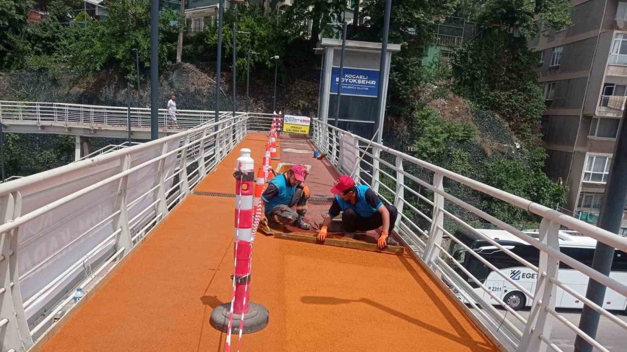 İzmit Yenidoğan üstgeçidinin zemin kaplaması değiştirilerek, yayaların daha güvenli ve konforlu geçişi sağlandı.