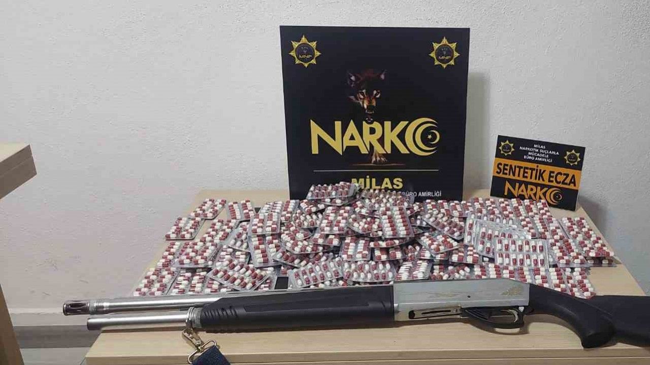 Muğla Emniyet Müdürlüğü Narkotik Suçlarla Mücadele Şube Müdürlüğü ekiplerince Milas ilçesine uyuşturucu madde taşıdıkları yönünde bilgi edinildi. Yapılan çalışmalar kapsamında, Antalya İli istikametinden Milas ilçesine gelen şüpheli 3 şahıs Narkotik Şube ekiplerince yakalandı. Şüpheli şahısların araçlarında ve ikametinde yapılan aramada; 2 bin 115 adet sentetik ecza maddesi ve ruhsatsız av tüfeği ele geçirildi.