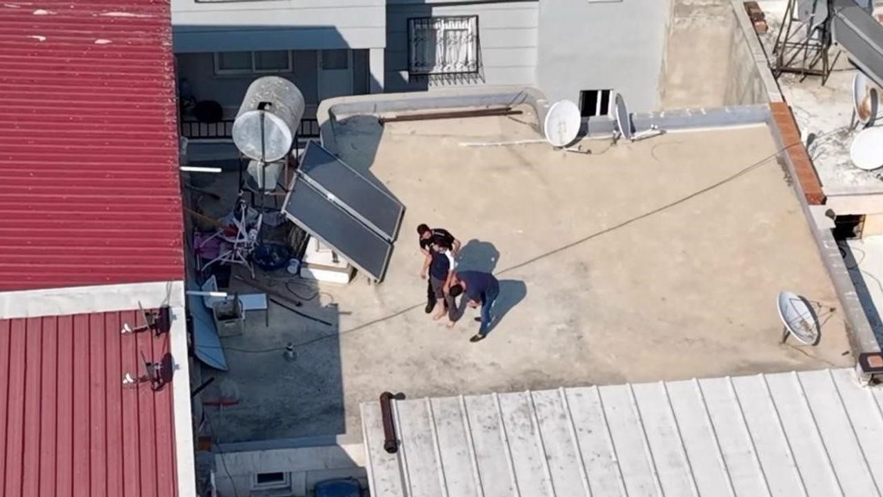 Yapılan titiz çalışmalar sonucunda, şahsın Akdeniz ilçesinde bir adreste bulunduğu tespit edildi. Adrese düzenlenen operasyonda İ.A., ikametinin çatı kısmından çok miktarda esrar maddesini havalandırma boşluğu ve tuvalet giderine atarak kaçmaya çalıştı. Ancak polis ekiplerinin havadan dron ile yaptığı takip sonucu şüpheli kıskıvrak yakalandı.