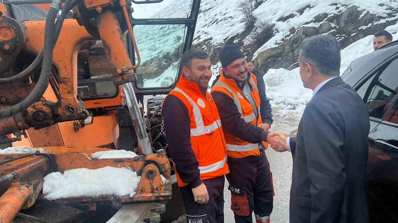 Vali Ekici, Uludere ilçesine bağlı Gülyazı köyü çevresinde karayolları ekipleri tarafından yürütülen çalışmaları yerinde denetledi. Zorlu kış şartları ve ağır arazi koşullarına rağmen aralıksız devam eden faaliyetler hakkında yetkililerden bilgi alan Vali Ekici, ekiplerin gece gündüz demeden görev yaptığını vurguladı. İncelemeler sırasında açıklamalarda bulunan Vali Ekici, kış mevsiminin olumsuz etkilerinin vatandaşların günlük yaşamını aksatmaması için tüm kurumların koordinasyon içinde çalıştığını belirtti. Ulaşımın kesintisiz sağlanmasının ve yolların güvenli şekilde açık tutulmasının öncelikleri arasında yer aldığını ifade eden Vali Ekici, karayolları personeline emeklerinden dolayı teşekkür etti. Vali Ekici, 'Zorlu kış şartlarında fedakarca görev yapan ekiplerimiz sayesinde vatandaşlarımızın mağduriyet yaşamasının önüne geçiliyor. Sahada gece gündüz demeden çalışan tüm personelimize kolaylıklar diliyorum' dedi.