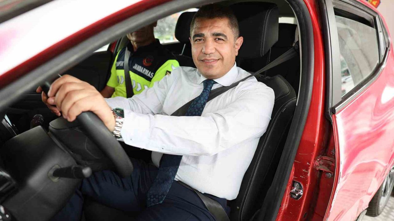 DÜZCE (İHA) – Bir kural, bir ömür boyu sürecek bir fark oluşturur mottosu ile Düzce’de Mobil trafik eğitim tırında direksiyon başına geçen Düzce Valisi Selçuk Aslan, takla atan otomobile bindi. Aslan araçtan indikten sonra emniyet kemerinin önemine dikkat çekti.