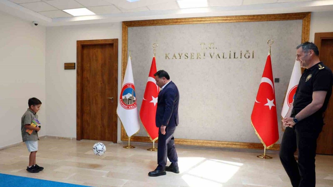 Kayseri’de 24 Şubat 2025 tarihinde görevi başında kalp krizi geçirerek şehit olan polis memuru İbrahim Birol’un ailesine ’Şehadet Belgesi’ teslim edildi. Vali Çiçek ve İl Emniyet Müdürü Aydın, şehit çocuğuyla makam önünde futbol oynadı.