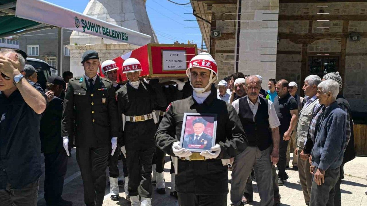 Afyonkarahisar’ın Şuhut ilçesinde vefat eden Kıbrıs Gazisi Yunus Dönmez düzenlenen askeri törenle dualar eşliğinde son yolculuğuna uğurlandı.