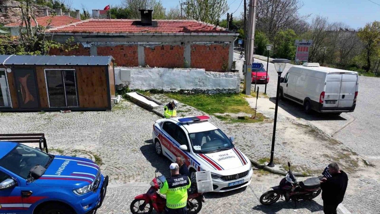 Vize İlçe Jandarma Komutanlığı’na bağlı Trafik Jandarması tarafından, drone ile kask ve emniyet kemeri denetimi gerçekleştirdi.