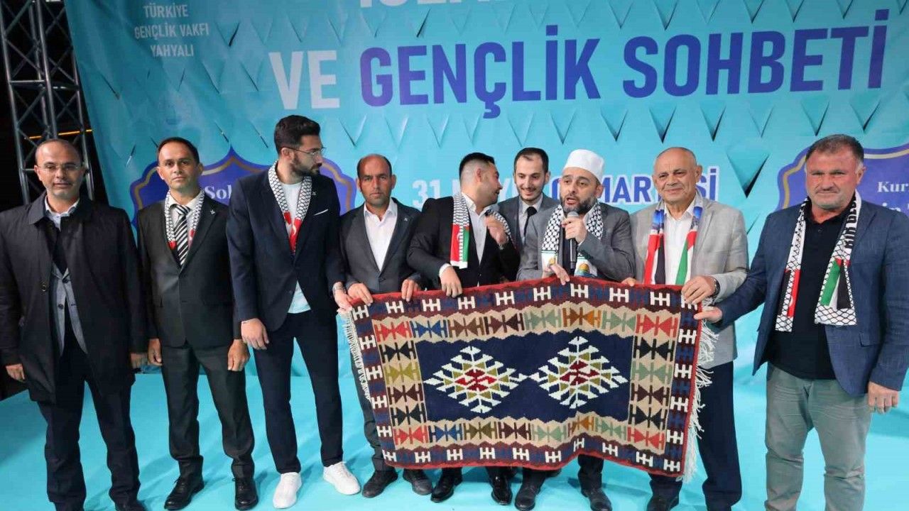 Yahyalı Belediyesi ile Türkiye Gençlik Vakfı (TÜGVA) iş birliğinde, ilçede anlamlı bir kültürel etkinlik gerçekleştirildi. Diyanet İşleri Başkanlığı İmam Hatibi Halil Konakçı ve Ayasofya-i Kebir Camii Şerif İmam Hatibi Kurra Hafız Bünyamin Topçuoğlu Yahyalı halkı ile buluştuğu sohbet programında önemli mesajlar verildi. Vatandaşların yoğun ilgi gösterdiği program, manevi atmosferiyle gönüllere dokundu. Yahyalı Cumhuriyet Meydanı’nda düzenlenen etkinliğe, AK Parti Kayseri Milletvekili Sayın Bayar Özsoy, Yahyalı Belediye Başkanı Esat Öztürk, AK Parti İlçe Başkanı Adem Sarıçiçek, TÜGVA Kayseri Başkan Yardımcısı Furkan Cihan, TÜGVA Yahyalı İlçe Başkanı Yunus Sakızlı, kurum amirleri, ilçe protokolü ve çok sayıda vatandaş katıldı. Programda Ayasofya-i Kebir Camii Şerif İmam Hatibi Kurra Hafız Bünyamin Topçuoğlu’nun Kur’an-ı Kerim tilaveti ile başlayan etkinlik, Halil Konakçı’nın sohbetiyle devam etti. Özellikle gençlerin yoğun ilgi gösterdiği etkinlikte, İslam ahlakı, aile yapısı, toplumsal değerler ve gençliğin karşılaştığı sorunlar gibi konular ele alındı. Konuşmasında gençliğe ve ailenin önemine dikkat çeken Halil Konakçı; "Gençliğimizi milli ve manevi değerlerle donatmalıyız. Aileden başlayarak toplumun her bireyi bu sorumluluğu taşımalı" ifadelerini kullandı. Katılımcılara hayatın içinden örneklerle hitap eden Konakçı, zaman zaman duygusal anlar yaşattı, zaman zaman ise tebessüm ettirdi. Program sonunda kısa bir konuşma yapan Yahyalı Belediye Başkanı Esat Öztürk ise, "Bugün burada değerli hocamız Halil Konakçı ve değerli Bünyamin Topçuoğlu hocamızı ilçemizde ağırlamaktan büyük memnuniyet duyduk. Vatandaşlarımızla buluşmasından ve verdiği mesajlardan dolayı kendisine teşekkür ediyorum. Bu tür manevi etkinliklerle toplumumuzun değerlerini yaşatmaya devam edeceğiz" dedi.
