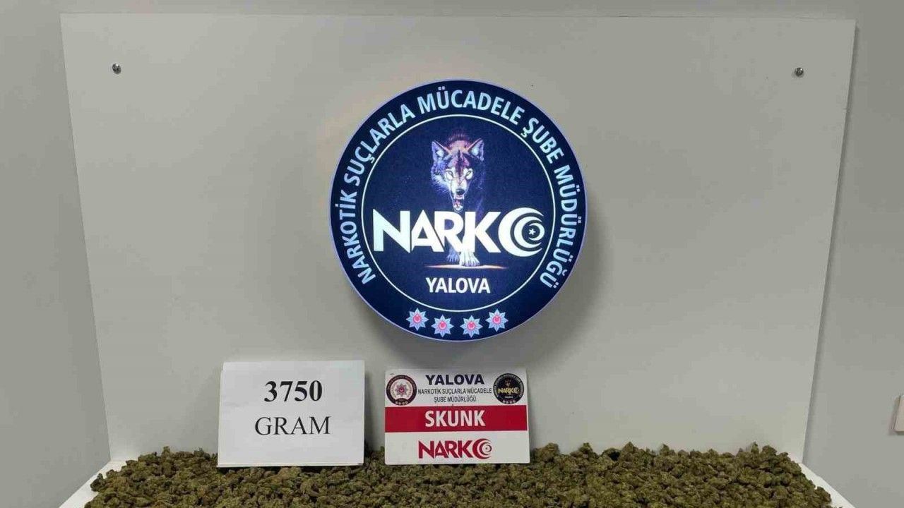 Alınan bilgiye göre, Yalova Emniyeti Narkotik Suçlarla Mücadele Şube Müdürlüğü ekipleri, uyuşturucu madde sevkiyatı ve ticareti yaptığı değerlendirilen A.E. kullandığı motosikleti durdurdu. Şahsın üzerinde, eşyalarında ve kullanmakta olduğu 34 plakalı motosiklette yapılan kontrollerde motosiklet üzerinde bulanan valiz içinde 2 parça halinde toplam 3 kilo 750 gram skunk maddesi ele geçirildi. Şahsın üzerinden çıkan 28 bin 480 TL, 200 Amerikan Doları ve 20 Euro nakit paraya da el konuldu.