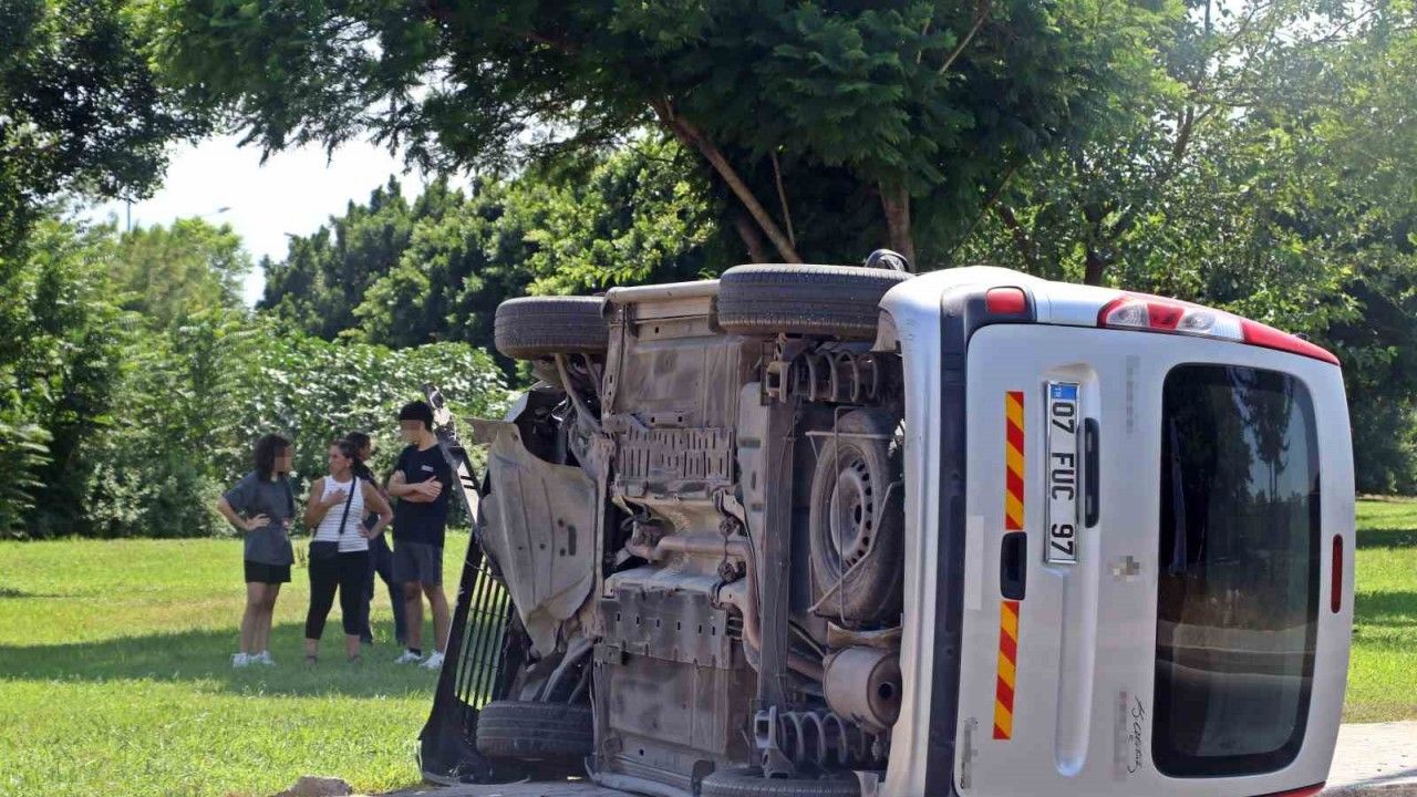 Antalya’da virajı alamayan hafif ticari araç kaldırıma çarpıp yan yattı. Kazayı gören diğer sürücülerin 112’ye haber vermesi üzerine olay yerine 3 ambulans, 1 acil müdahale motorize sağlık ekibi, 1 itfaiye ve polis sevk edildi. Olay yerine gelen ekipler sürücü anne ve yanındaki küçük kızının sıyrık dahi almadığını görünce şaşkınlık yaşadı.