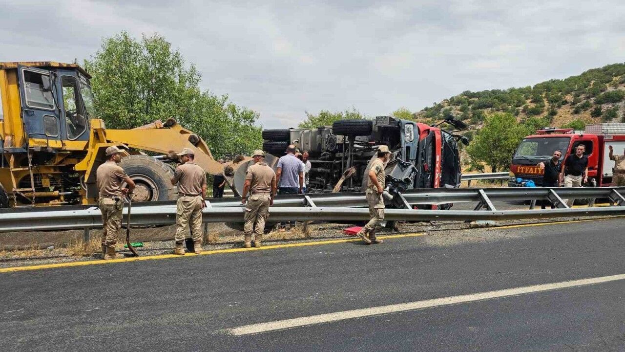 Diyarbakır’ın Ergani ilçesinde yangın söndürmeye giden itfaiye aracı devrildi, kazada biri ağır 3 kişi yaralandı.